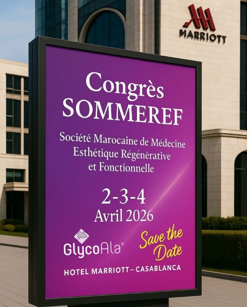 GlycoAla’s participation in the SOMMEREF Congress (Moroccan Society of Regenerative and Functional Aesthetic Medicine), held from April 2 to 4, 2026, at the Marriott Hotel in Casablanca, Morocco.